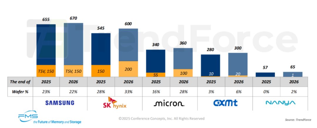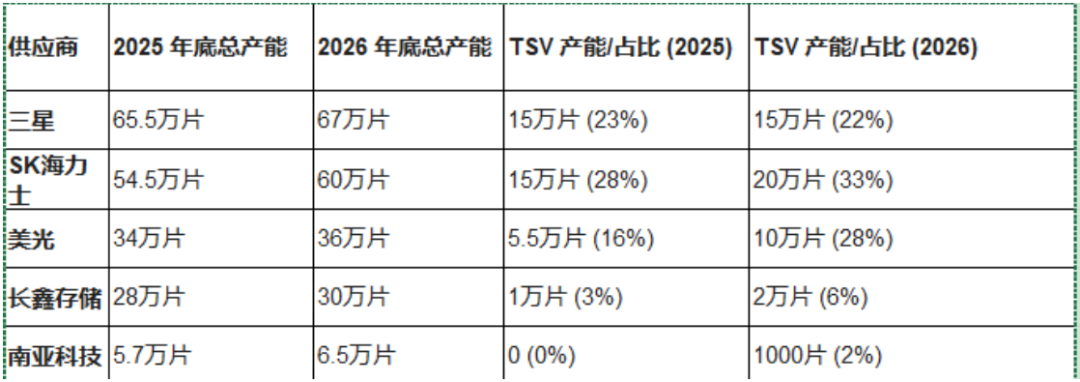 备注:2026 年三星 TSV 产能现在规划提升至 25 万片,高于图中预测的 15 万片