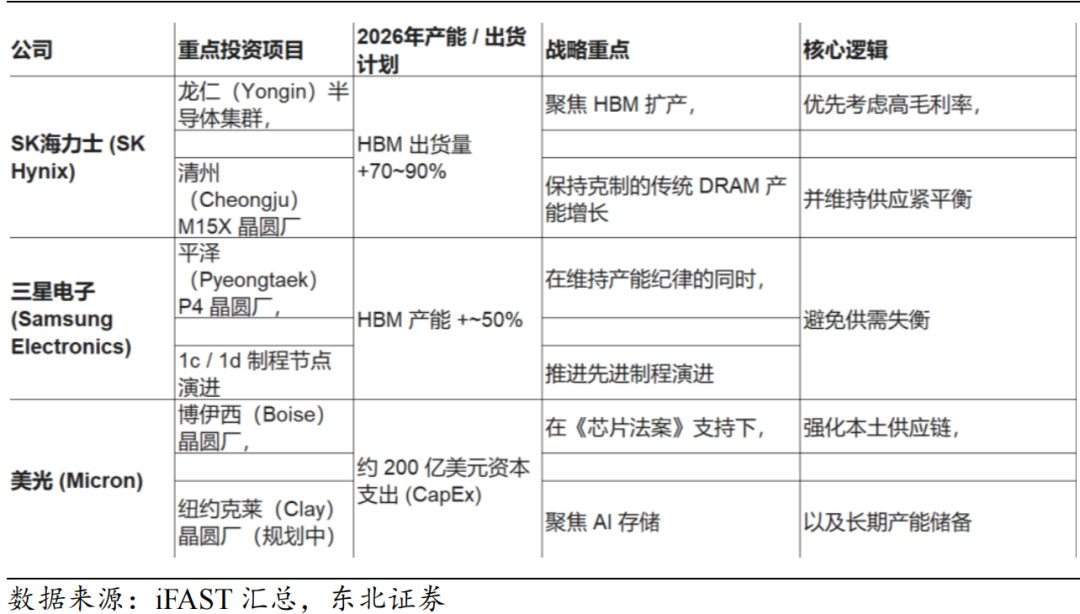 海力士、三星和美光 2026 年 HBM 扩产情况