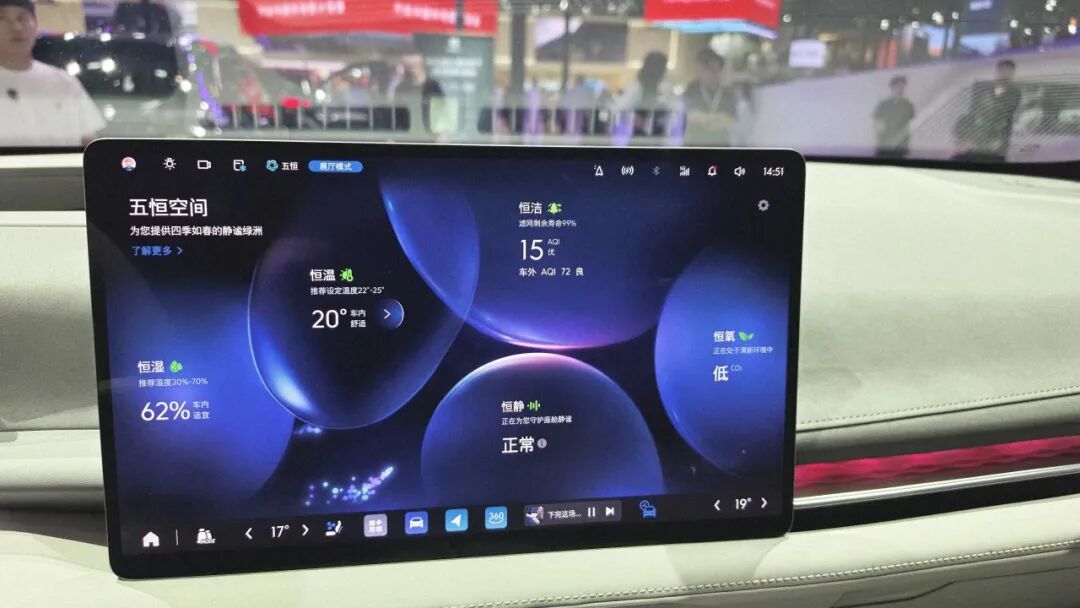 至境 E7 座舱全览,“五恒” 系统以及支持语言模糊检索的导航和车控(左右滑动查看)