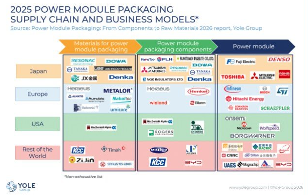 本文探讨了塑造功率模块封装生态系统的市场动态,重点介绍了关键技术创新、不断演变的供应链战略,以及主要行业参与者的竞争定位。本文观点来自Yole Group的分析,该分析基于包括《2025年功率模块封装现状》和《功率模块封装:从组件到原材料(2026)》在内的一系列功率模块相关报告。