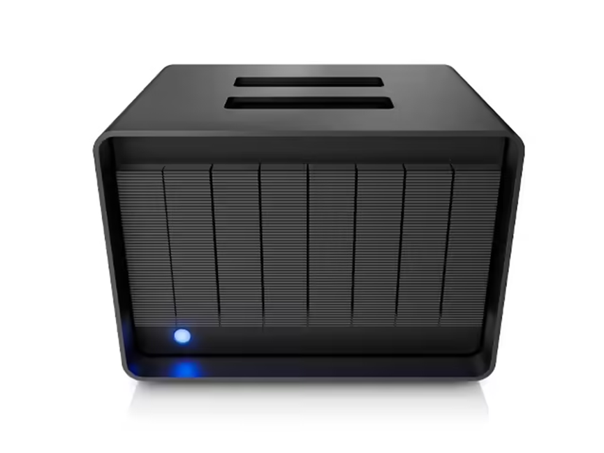 LaCie 8big Pro5适用场景为专业创意人士和制作团队。采用8盘位设计,配备雷电5接口(可提供140W PD输出),支持硬件RAID 0/1/5/6/10/50/60、JBOD和多RAID设置,面向多路4K/8K视频处理、大型RAW图像库、AI辅助制作等工作流。