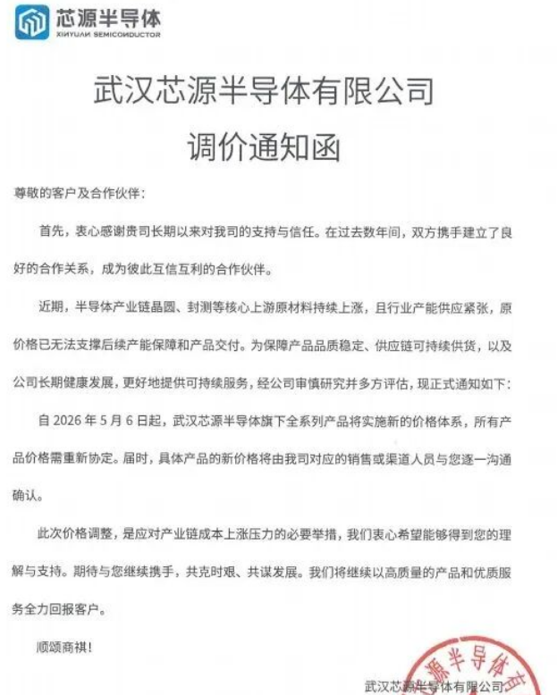 2月5日,通知上写明,受AI数据中心部署带动,其功率开关与集成电路产品需求大涨、出现缺货。因扩产需大幅追加晶圆厂投资,叠加原材料与基建成本持续上涨,公司将自2026年4月1日起调整部分产品价格。