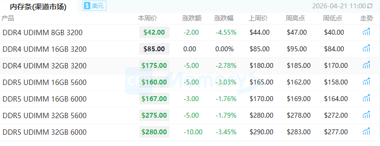 正因如此,渠道客户备货意愿低迷并持续观望,渠道厂商为争取订单成交,针对有实际备货需求的客户给予一定的价格支持。因此上渠道内存条及SSD价格普遍再度续跌。