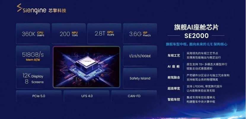 芯驰发布了AI座舱芯片X10,X10实现了4倍的大模型计算效率提升,以80 TOPS的稠密算力和154GB/s的DDR带宽,可以支持高达9B参数大模型的端侧部署。X10采用4nm车规工艺,CPU和GPU性能大幅提升,达到250KDMIPS和3000GFLOPS,搭配支持8K分辨率的VPU和DPU,同时支持12个摄像头和8个显示屏。以单颗芯片取代传统座舱域控+外挂AI Box的组合方案,DDR存储容量节省25%。