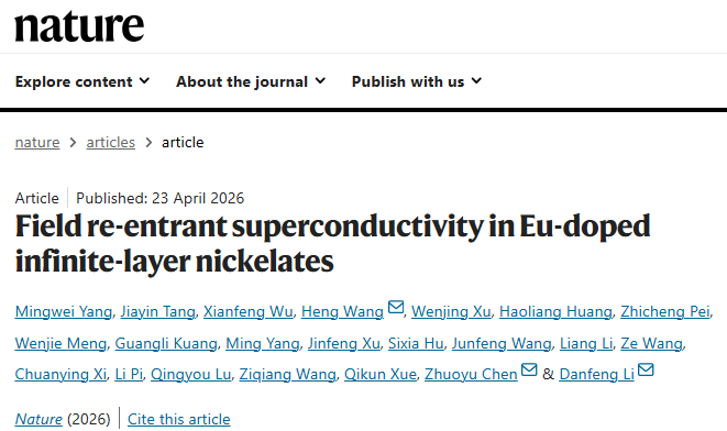 Yang, M., Tang, J., Wu, X. et al. Field re-entrant superconductivity in Eu-doped infinite-layer nickelates. Nature (2026).