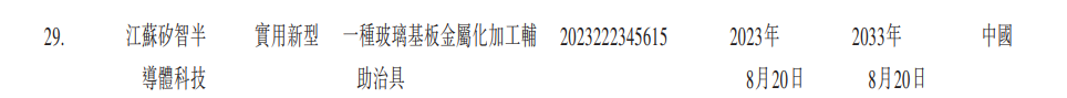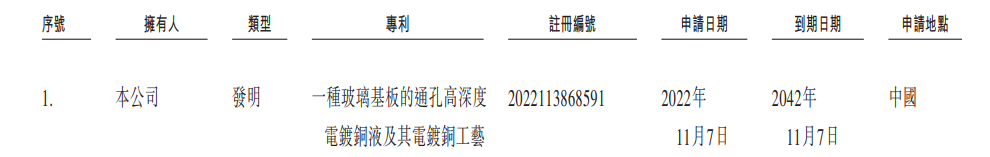 创智芯联的研发专注于开发新的镀层材料产品及配套先进封装工艺,持续专注于开发适用于更多封装基板的TGV/TCV镀层材料及配套工艺,进一步巩固公司在玻璃、陶瓷基板及电子陶瓷封装等芯片级封装的先发优势,目前已注册的玻璃基板业务相关的重大专利有: