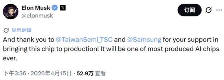 在评论区中,马斯克同时点名感谢了三星和台积电。三星提供更具弹性的产能支撑和成本空间;台积电则提供先进制程能力,保证性能上限。