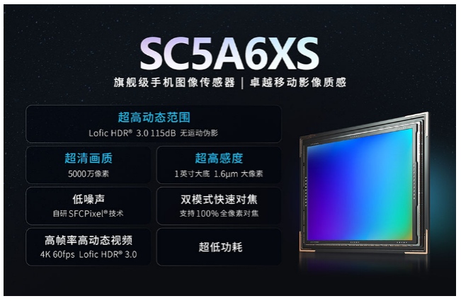 2026年3月27日,中国上海 — 思特威(上海)电子科技股份有限公司(股票简称:思特威,股票代码:688213)近日宣布,全新推出5000万像素1英寸超高动态范围手机应用图像传感器新品——SC5A6XS。此款新品基于思特威SmartClarity®-XL Pro技术打造,采用了22nm Stack先进工艺制程,创新搭载思特威全新升级Lofic HDR® 3.0技术,同时搭载SFCPixel®及A