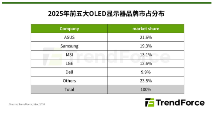 March 26, 2026 ---- 根据TrendForce集邦咨询最新调查,2025年全球OLED显示器出货量达273.5万台,年增率高达92%。亮眼表现主要受惠于品牌端第四季强力促销以及27吋240Hz QHD机型凭借极高性价比大幅推升出货,加上280Hz新品问世为市场注入了新动能。展望2026年,随着品牌加强推陈出新与行销策略持续发酵,可望创造全年出货量51%的年成长。 分析2025年主
