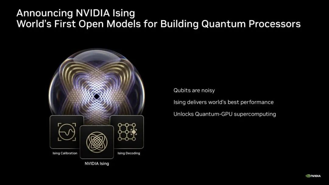 半导体行业圈 振兴国产半导体产业!4月14日,英伟达(NVIDIA)正式宣布推出全球首个开源量子人工智能模型系列——“Ising(伊辛)”,聚焦解决量子处理器校准和量子纠错两大核心痛点,使得AI代理能够持续自动化校准,并能把校准时耗从数天缩短到数小时;纠错运行速度与准确率较行业标准分别最高提升约2.5倍和3倍。该模型已被全球多家顶尖实验室、高校及量子企业采用。英伟达意图绑定量子计算与自身算力体系,