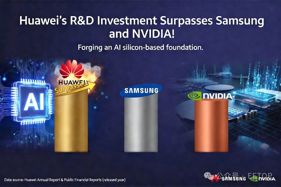 韩国媒体Business Korea报道称,华为去年研发总投入达 1923 亿元人民币,折合成韩元约为42.4万亿韩元。三星电子同期研发支出为37.7万亿韩元(约合人民币1730亿元),华为比三星高出约5万亿韩元(约合人民币230亿元)。2024 年,三星电子凭借在高带宽内存(HBM)等 AI 半导体领域的积极扩投,研发投入曾小幅领先华为;但去年华为再度扩大投资规模,双方的研发投入差距进一步拉大。