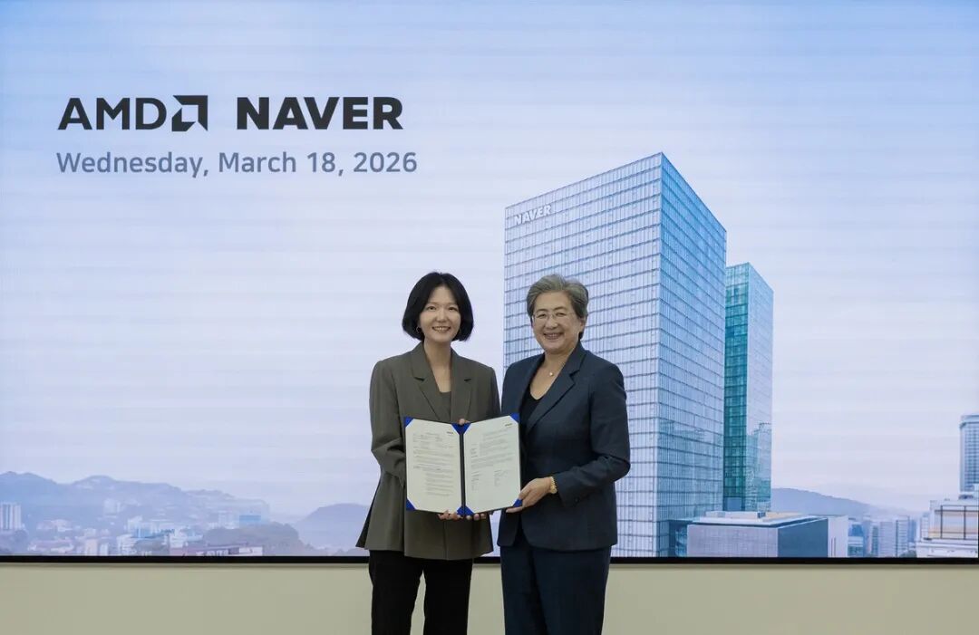 3月18日,美国处理器大厂AMD CEO 苏姿丰到访韩国后,就陆续与三星电子、Naver、Upstage等合作伙伴会晤,并签订了合作谅解备忘录(MOU)。这也是苏姿丰自2014年就任AMD首席执行官以来首次正式访问韩国。与Naver CEO崔秀妍签署MOU据悉,苏姿丰于3月18日早晨抵达的韩国首尔,随后就访问了韩国互联网巨头Naver总部,并与Naver CEO崔秀妍签署了关于“扩展人工智能生态系