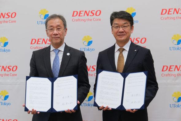 デンソーと東京大学は2026年3月30日、同年4月1日から2036年3月31日までの10年間にわたる産学協創協定を締結すると発表した。同日、東京大学にて説明会および調印式を実施した。 東京大学総長の藤井輝夫氏(左)、デンソー代表取締役社長の林新之助氏(右)[クリックで拡大] モビリティでの移動から価値創出目指す モビリティの電動化によってエネルギー全体の在り方が課題になっているほか、自動運転の実現