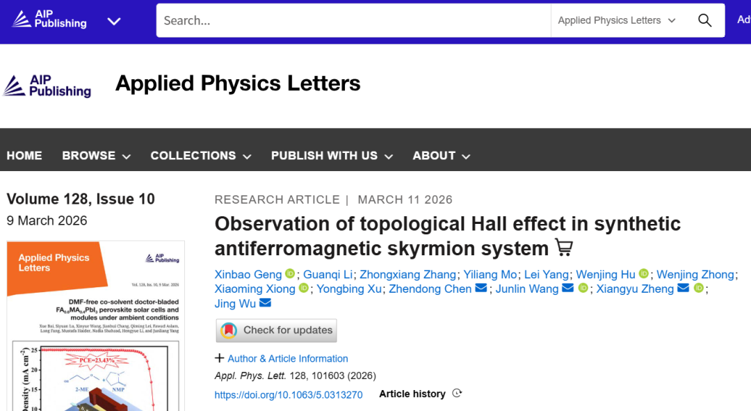 近日,广东工业大学集成电路学院科研团队在合成反铁磁斯格明子体系的拓扑霍尔效应研究领域取得重要进展。该研究以题为“Observation of topological Hall effect in synthetic antiferromagnetic skyrmion system”的论文发表于应用物理领域权威期刊《Applied Physics Letters》。致真精密仪器自主研发的AtomE