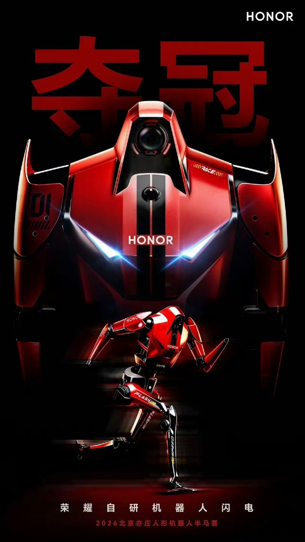 快科技4月19日消息,2026人形机器人半程马拉松比赛,今日7:30在北京亦庄鸣枪开跑。 最终,荣耀自研的“闪电”机器人凭借50分26秒(净用时)的成绩夺得冠军,并打破人类半程马拉松56分42秒的世界纪录。 据了解,2026人形机器人半程马拉松比赛,赛程全长超21公里,赛道融合平地、坡道、弯道、狭窄路段等10余种地形,12个左转道、10个右转道。 本届赛事报名队伍超100支,约为首届规模5倍,选手