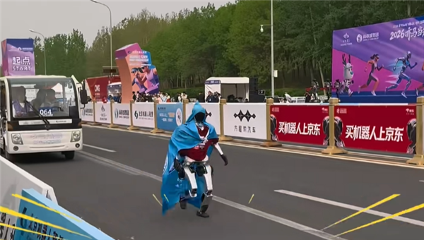 快科技4月19日消息,2026人形机器人半程马拉松比赛,今日在北京亦庄举行。 本届赛事报名队伍超100支,约为首届规模5倍,选手数量创新高,还有来自法国、德国、巴西等多支国际队伍将首次参赛。 赛场中,除了有荣耀闪电这样的冠军机器人,还有不少画风奇特的奇葩选手。有媒体制作了人形机器人半马抽象大赏视频,我们一起来看下。 有参赛队伍开屏暴击,直接派出了“无头战士”参战,最上面看着像是一个手提把手。不过,