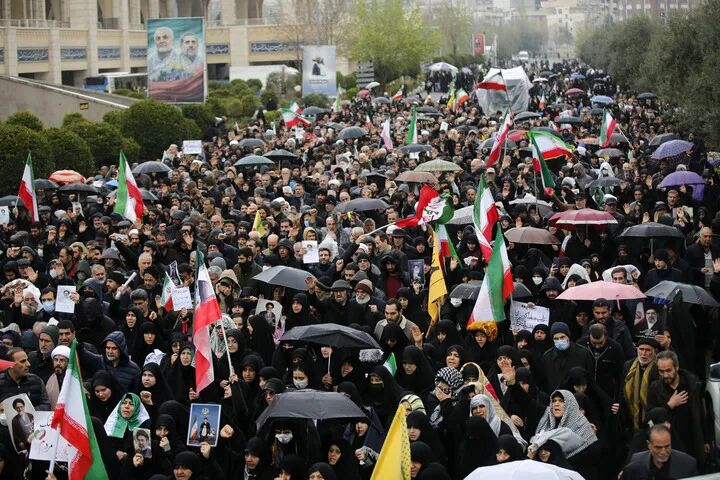 美国和以色列对伊朗发动的军事打击进入第四周。这场战事如何结束尚无法预测,但已然对地缘政治和世界格局产生强烈冲击和深远影响。国际舆论警告,这场战事如同“一个不断扩大的危险漩涡”,裹挟地区安全、反噬美国自身、冲击全球经济、破坏国际秩序。美以“战争成瘾”的强权逻辑和霸权惯性,正严重侵蚀世界和平发展的根基。3月20日,在伊朗首都德黑兰,人们参加伊朗情报部长伊斯梅尔·哈提卜及其家人的遗体告别仪式。新华社发中