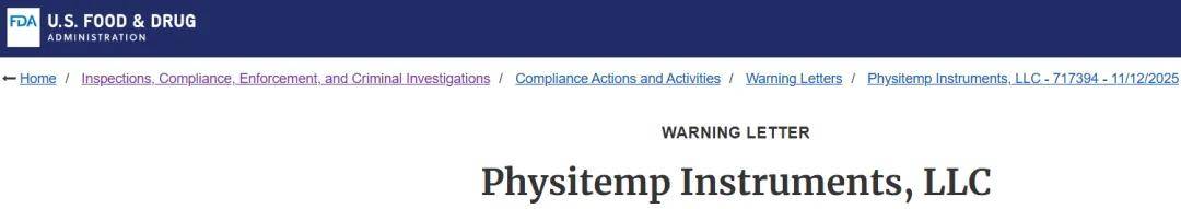 2025.4.29至2025.6.18期间,FDA在美国本土生产现场检查中发现并认定: 临床电子体温计、临床温度监测探头、针型微探针是“伪劣医疗器械” ,原因为其生产、包装、储存或安装所用方法、设施或控制措施不符合21 CFR Part 820《联邦法规法典》21编820部分的质量体系法规中现行良好生产规范要求。基于此,FDA于官网公布警告信并列出多项检查发现的违规行为↘一. 质量体系的违规行为