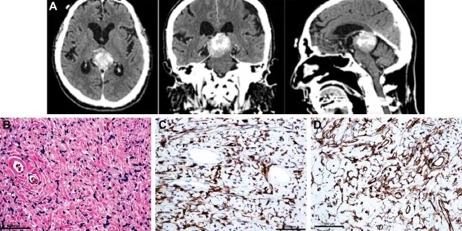 一名72岁男性于2004年首次就诊,症状表现为严重头痛、癫痫发作和步态不稳。影像学检查显示松果体区占位性病变伴脑积水。内镜下第三脑室造瘘术并行肿瘤活检,但结果未能明确诊断。患者接受了为期3年的临床和影像学随访,后失访。在随访期间,病变无明显症状,且重复MRI检查显示其大小增长甚微。 初次治疗11年后,患者因出现为期3个月的显著步态缓慢、不稳及间歇性视力模糊再次就诊。其记忆力、注意力及专注力亦进行性