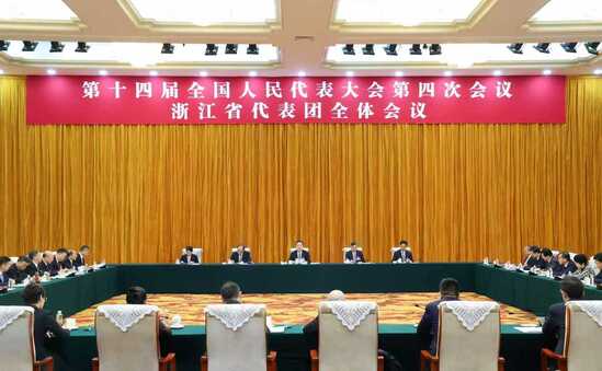 3月6日上午,浙江代表团举行全体会议,传达学习习近平总书记在参加十四届全国人大四次会议江苏代表团审议时的重要讲话精神。记者 李震宇 摄浙江代表团传达学习习近平总书记在参加江苏代表团审议时的重要讲话精神以“走前列、作示范”定位标准坚决贯彻落实习近平总书记重要讲话精神不断擦亮干在实处、走在前列、勇立潮头的鲜明标识王浩主持并讲话 刘捷参加6日上午,浙江代表团举行全体会议,传达学习习近平总书记在参加十四届