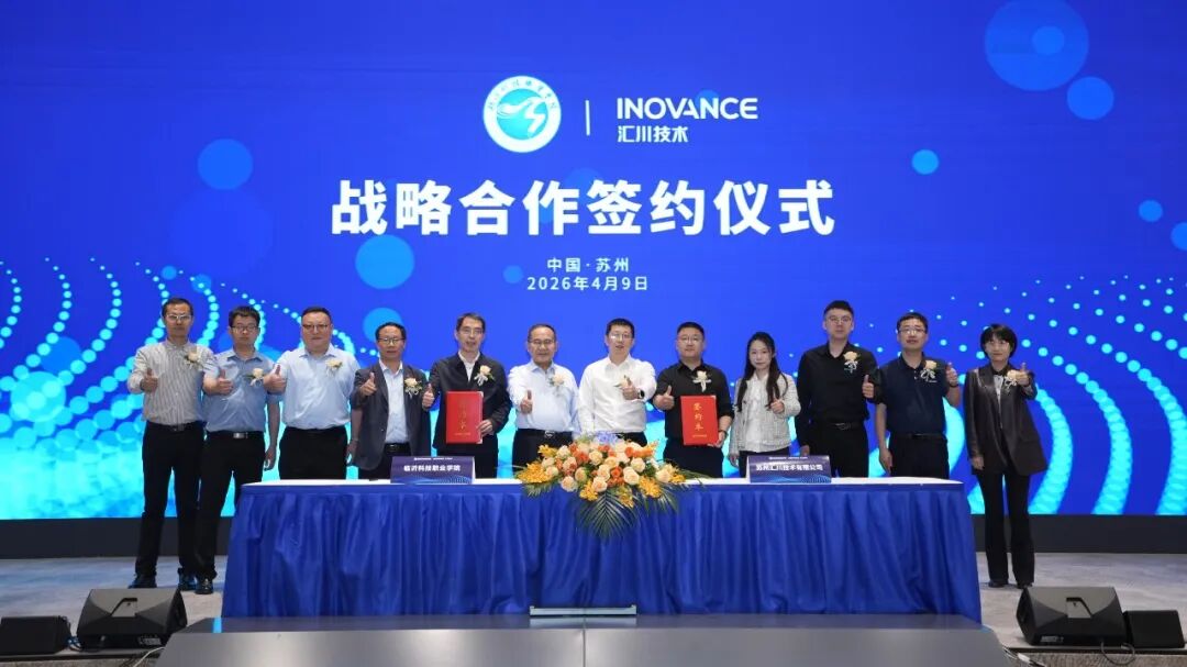 2026 年 4 月 9 日,临沂科技职业学院与汇川技术战略合作签约仪式在苏州汇川技术总部圆满举行。临沂科技职业学院党委书记沈如茂与汇川技术全球工业自动化(中国)轮值总裁刘东旭代表双方签署协议,标志着双方合作正式提升为“人才培养-技术创新-产业升级”的全方位战略协同。参访聚共识 致辞启新程签约仪式前,临沂科技职业学院代表团一行参观了汇川技术工控博物馆,深入了解汇川技术的核心技术积淀、全产业链布局成