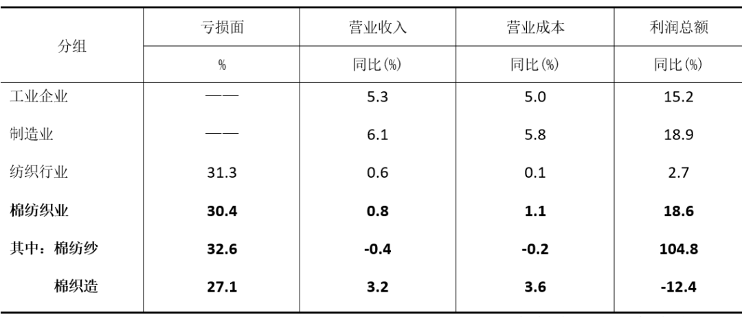 棉纺织业——利润同比大幅增长, 利润率指标存隐忧 据国家统计局数据,2026年1-2月规模以上棉纺织企业营业收入同比增长0.8%,利润总额同比大增18.6%,两项指标均由上年全年累计下降转为增长,但营业收入利润率仅为1.08%,其中棉纺纱仅为0.77%,低于上年全年累计和上年同期同比数据。 1-2月份,规模以上棉纺织企业与纺织行业企业相比,亏损面低0.9个百分点,营业收入、营业成本及利润总额增长幅