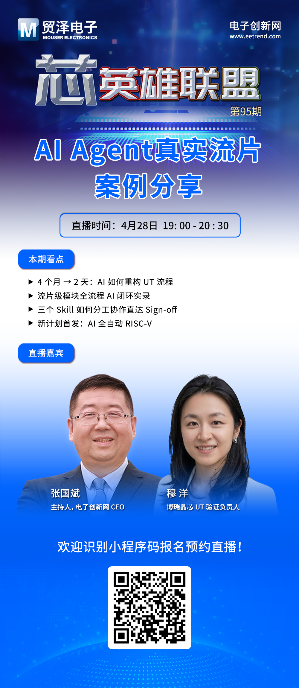 如果有一天,一颗处理器的诞生,不再需要上百名工程师、数年周期,你会相信吗?这一次,我们准备把这件事,变成现实。在本场直播中,分享嘉宾将首次公开一个全新计划——用 AI,全自动生成一颗 RISC-V 处理器。过去十年,芯片设计复杂度指数级攀升,但方法论却几乎停滞:一颗中等规模SoC,从架构定义到流片,动辄一两年、上百人协同。问题不是工程师不够努力,而是工具与范式,已经跟不上复杂度的爆炸。而我们判断—