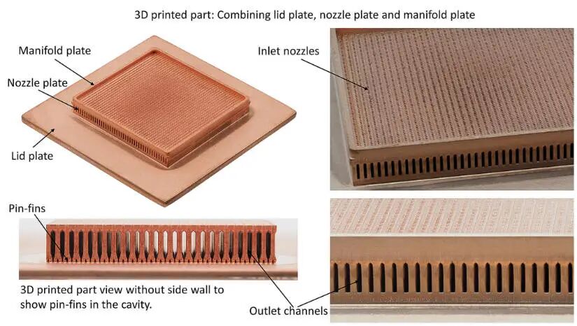 南极熊导读:AI算力持续攀升,芯片功耗不断突破上限。传统散热方案早已难以支撑高密度运算需求。高功率芯片散热难题如何破解?△ECAM 3D 打印一体化构件,集成盖板、喷嘴板与歧管板2026年4月,南极熊获悉,来自国立阳明交通大学、德克萨斯大学阿灵顿分校等的研究人员联合开发并了一款分布式入口喷嘴与出口槽道冷板 DINOS‑CP,旨在解决 AI、5G 及高性能计算场景下 1000W 级高功率芯片的散热难