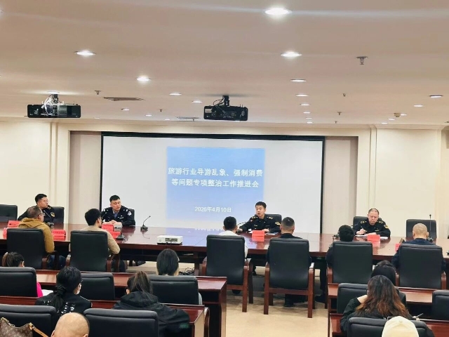 为进一步规范旅游市场秩序,切实保障游客合法权益,持续提升旅游服务品质,全力护航 “大连服务” 品牌建设,4月10日,大连市文化市场综合行政执法队联合大连市公安局治安管理支队召开旅游市场专项整治工作推进会。会议传达了旅游市场专项整治工作相关要求,通报2025年全市旅游市场典型问题及行政处罚情况,对导游强迫交易罪案件办理进行专业解读,并就提升旅游服务质量、推动大连旅游市场健康有序发展提出具体要求。会议