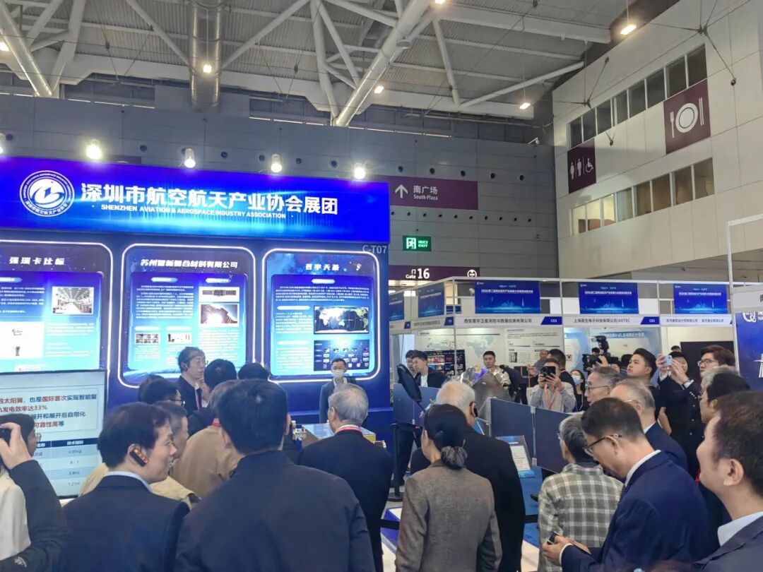 会后,与会领导一行在深圳市航空航天产业协会副会长单位代表、深圳市魔方卫星科技有限公司市场总监冯超、深圳市航空航天产业协会秘书长易国典的陪同下,前往深航协展团参观。在各参展企业展位,领导一行与魔方卫星、斯北图、微星物联、易动宇航、苍宇天基、鹏星智联、蓝箭航天等企业负责人深入交流,实地察看各企业创新成果与应用进展,详细调研企业发展实际需求。