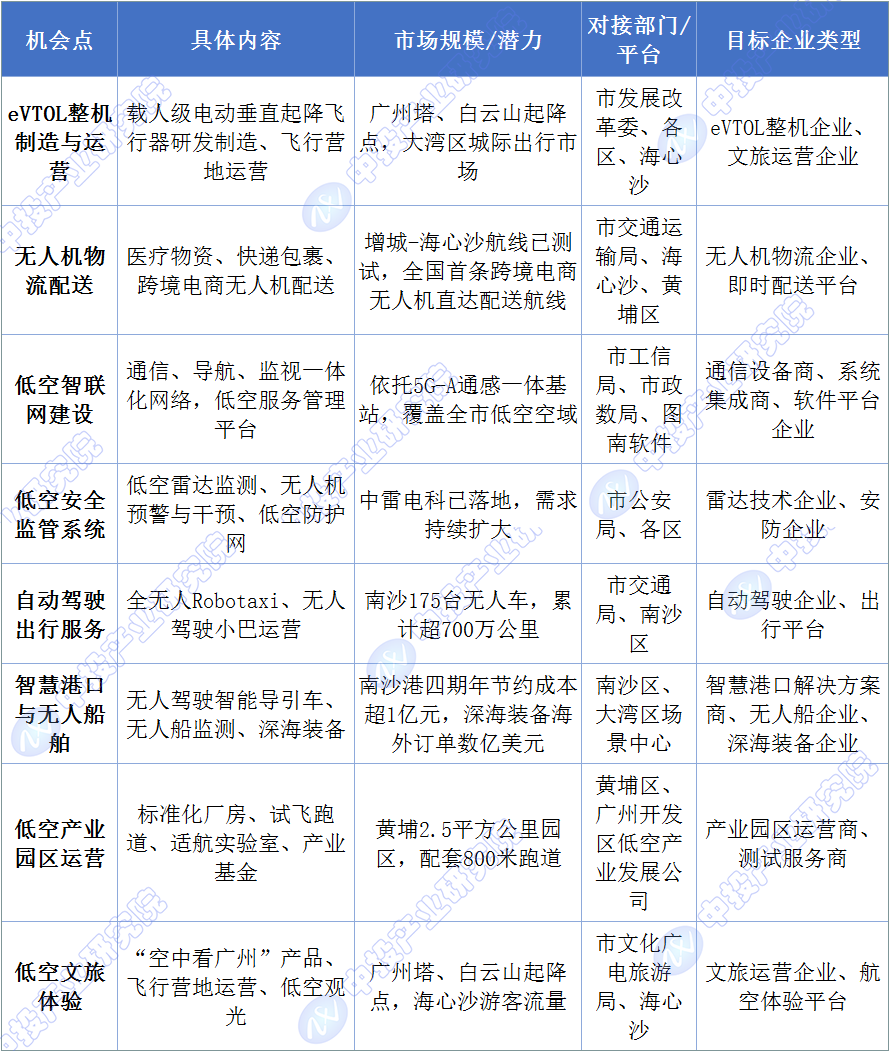 基于广州全空间无人体系领域的场景清单和产业布局,以下重点机会点值得关注: