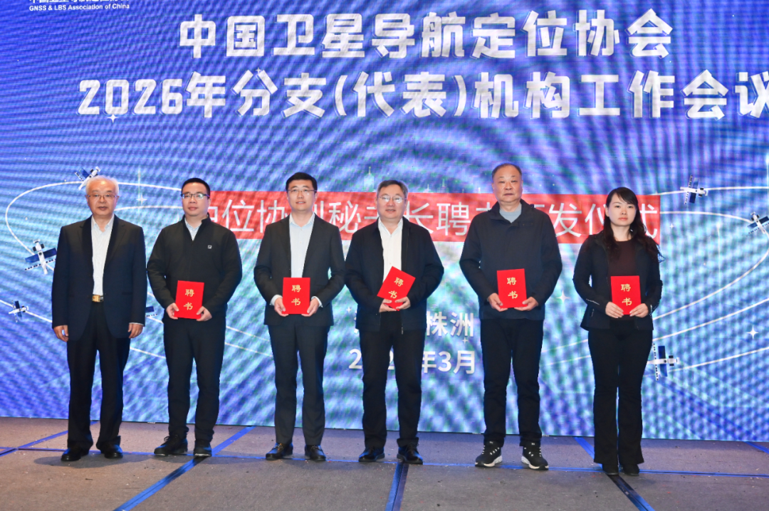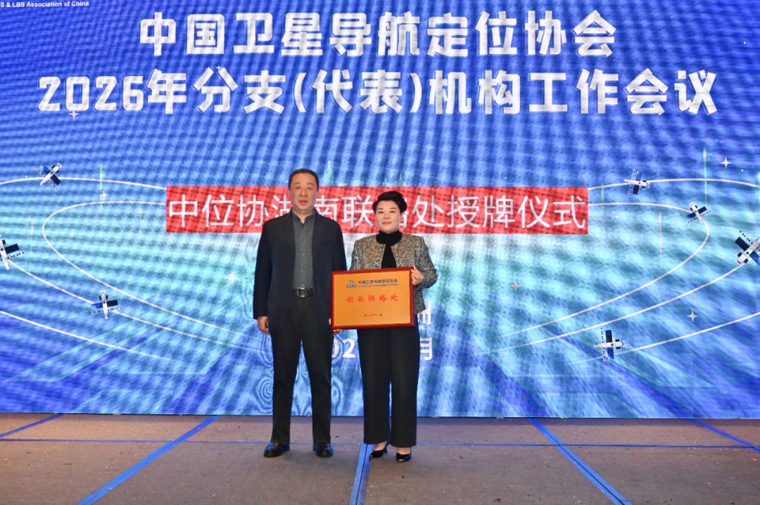 张辉峰为中国卫星导航定位协会湖南联络处主任杨亚平授牌;赵继成为协会第八届理事会兼职副秘书长李澍、余峰、王博、李冬航、赵步云、任艳、王艳艳等颁发证书。