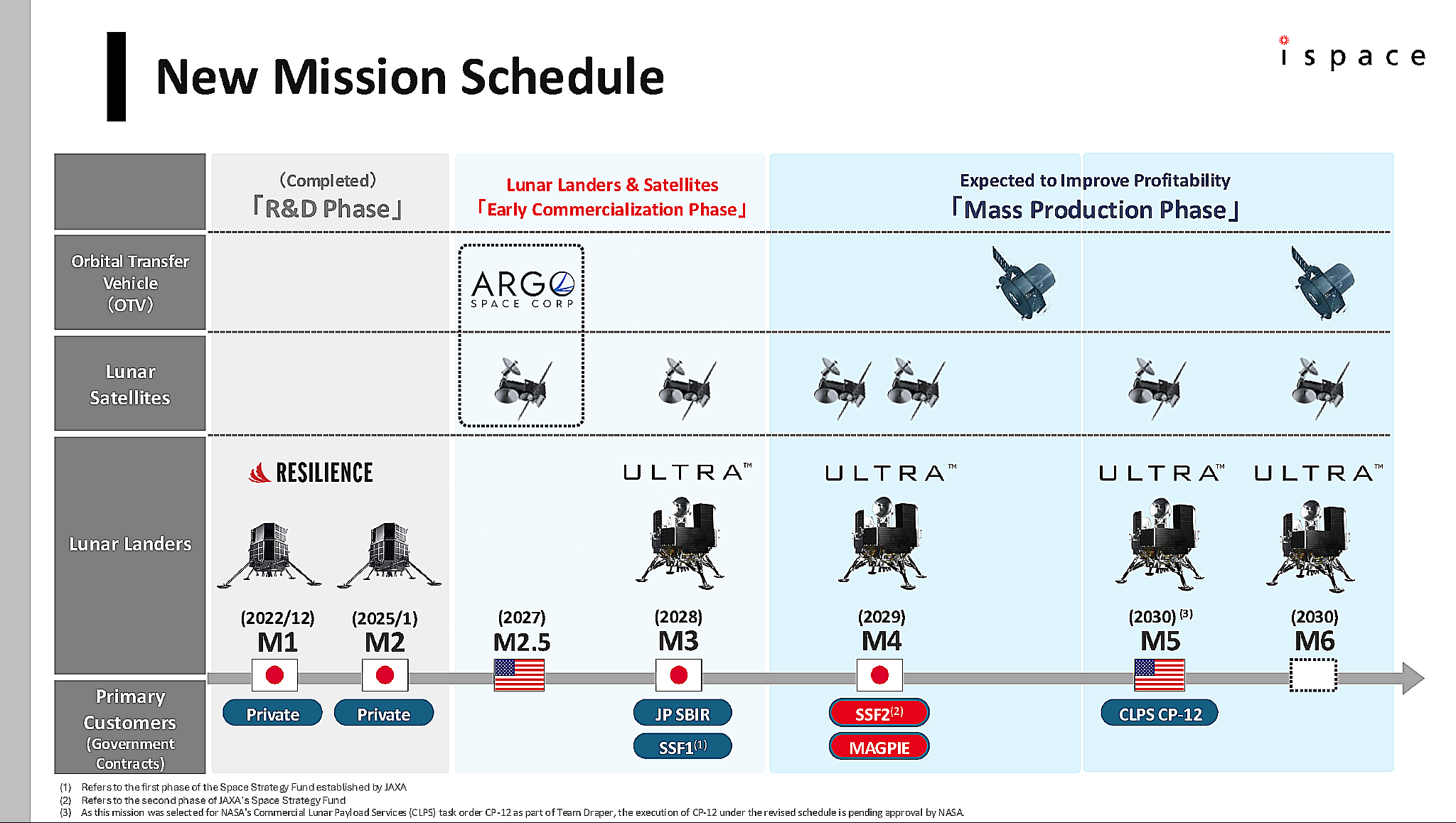 will be used in each of ispace’s next missions, resulting in a mission shift and schedule update for ispace-U.S.’s first mission, now expected in 2030. As this mission was selected for NASA’s Commercial Lunar Payload Services (CLPS) task order CP-12 as part of Team Draper, the execution of CP-12 under the revised schedule is pending approval by NASA. ispace’s next lunar landing mission is planned to launch in 2028.