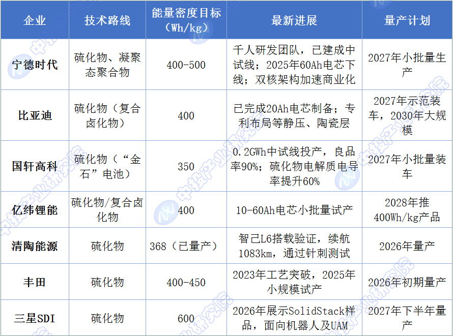 2.2 主要企业进展与量产时间表