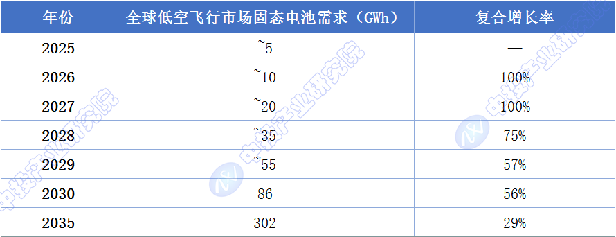 图表9:2025-2035年低空经济(eVTOL)固态电池需求预测