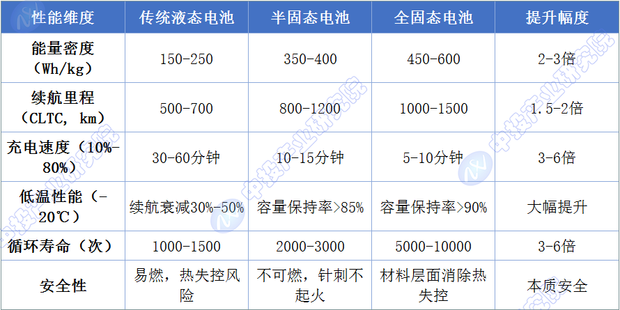 新能源汽车是固态电池最大的应用市场,也是驱动固态电池产业化的核心动力。固态电池在能量密度、安全性、快充性能、低温性能和循环寿命等方面相比液态电池具有全面优势,有望彻底解决消费者的“续航焦虑”和“安全焦虑”。