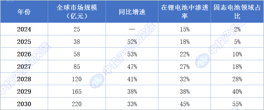 图表12:2024-2030年全球固态电池设备市场规模预测