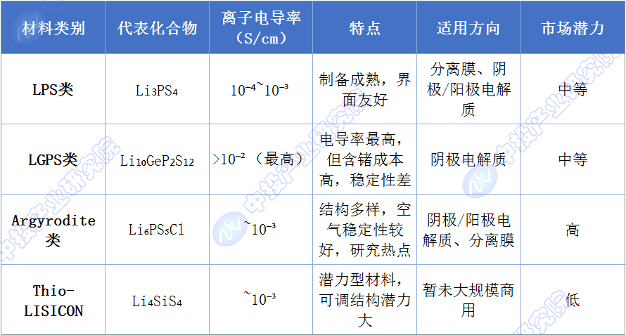 图表2:硫化物固态电解质四类材料性能对比