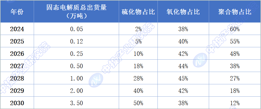 图表15:2024-2030年固态电解质出货量结构预测