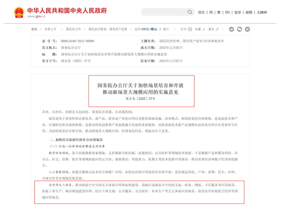 等无人体系应用场景。稳妥有序拓展低空经济等领域应用场景。