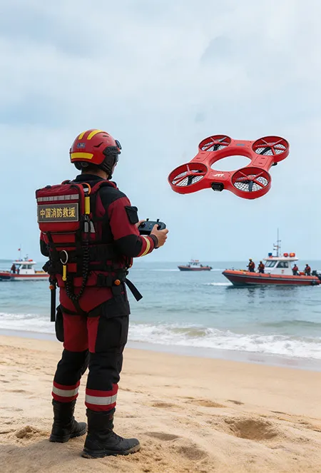 夏日戏水、海上作业、河道行船,看似平静的水面背后,往往藏着未知的落水风险,而水域救援的核心,就是抢在黄金时间里,既快速救起落水者,又能让救援人员远离危险。传统救援里,要么人工下水涉险,要么救生圈抛投偏差大,遇上恶劣天气还难以及时抵达。而深圳市智璟科技的FR01飞行救生圈,把“飞”和“救”结合起来,用智能操控和实用设计,让水上救援变得更简单、更安全,成了水域里的智能生命“摆渡者”。 和传统救生圈比起
