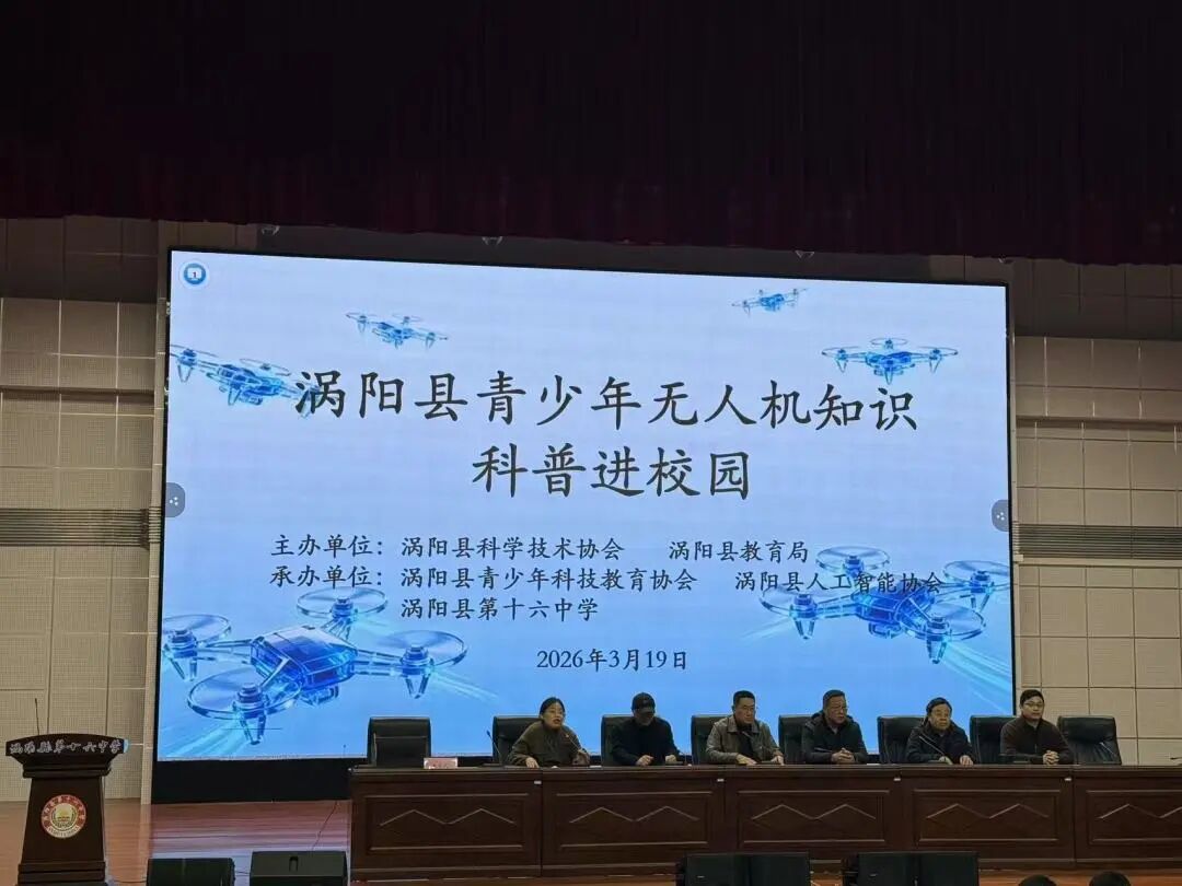 为弘扬科学精神,点燃青少年科学探索热情,2026年3月19日下午5:00,涡阳县青少年无人机知识科普进校园活动走进涡阳县第十六中学,为师生们带来一场精彩纷呈的科技体验。科普启智 探秘航空本次活动设置无人机科普讲座与无人机实操展示两大环节,理论与实践并行。涡阳县科技协会副主席汪海洋首先与同学们开展了趣味科学常识互动问答。他以轻松活泼的方式提出科学小问题,同学们踊跃抢答、积极回应,参与热情高涨,现场气