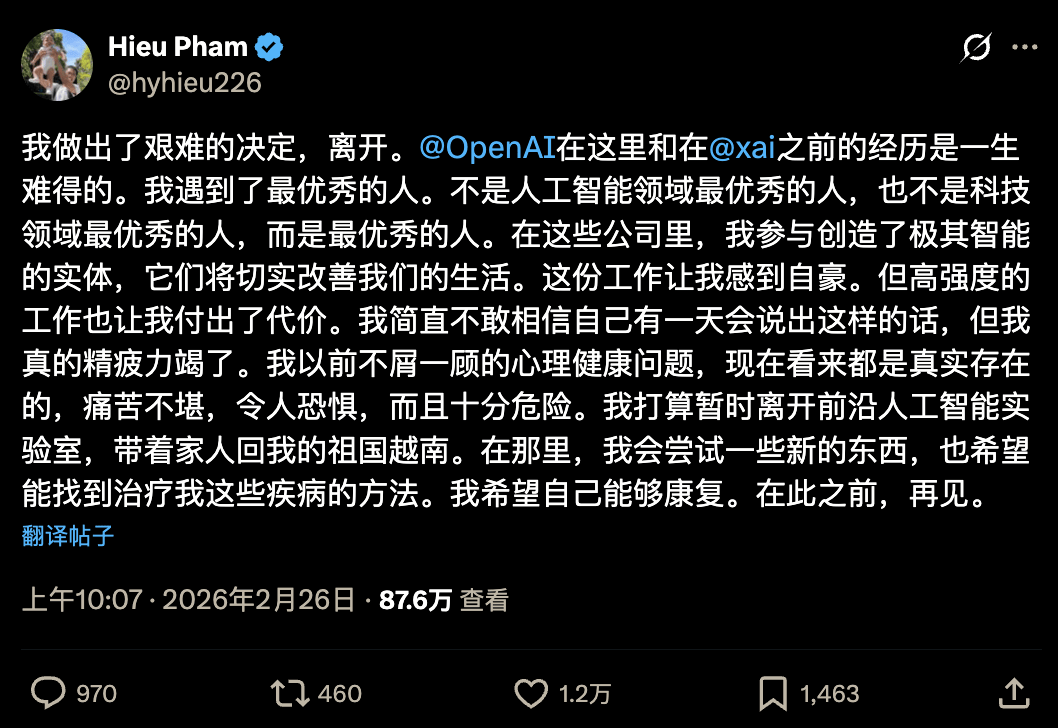 一场由顶尖人才集体出走引发的行业震荡,正在硅谷人工智能领域悄然蔓延。当OpenAI工程师Hieu Pham在社交平台宣布辞去职务、携家人返回越南时,这场持续数年的高压危机终于撕开了最后一层遮羞布。这位曾代表斯坦福大学征战全球编程大赛、在CMU攻读机器学习博士的精英,用"痛苦、可怕、极度危险"形容自己的精神状态,直言需要"寻找治愈病症的方法"。在硅谷的科技版图中,Hieu Pham的履历堪称完美:从