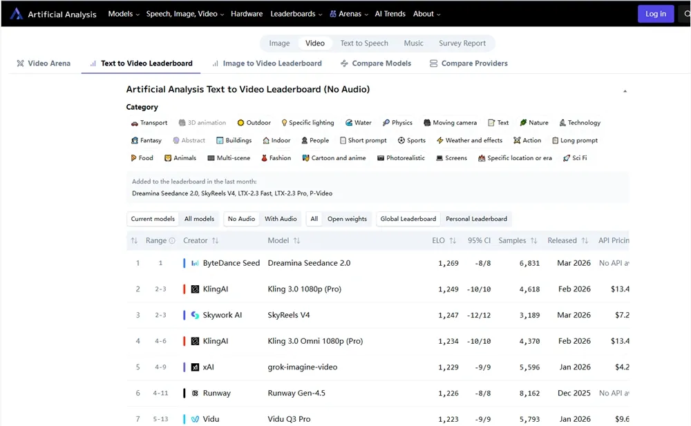一、 榜单地震:中国模型首次登顶全球视频生成之巅当业界还在热议OpenAI Sora与Google Veo3的竞争格局时,一匹来自中国的“黑马”悄然改写了AI视频生成的权力版图。国际权威评测机构 Artificial Analysis 发布的最新独立盲测数据显示,字节跳动(ByteDance)推出的 Seedance 2.0 模型,在Text-to-Video(文本生成视频) 类别中取得了 Elo