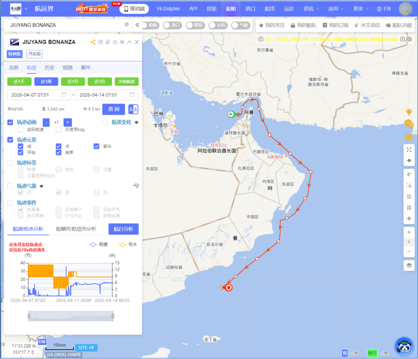 航运界网消息,当地时间4月11日,美伊同意停火两周并进行谈判,首艘汽车船成功穿越霍尔木兹海峡,安全驶离波斯湾。具体而言,自2月28日美以对伊朗军事行动以来,霍尔木兹海峡实质上关闭,共有14艘汽车船被“困”在波斯湾。AIS数据显示,当地时间4月11日,这艘6000CEU的“JIUYANG BONANZA”轮(IMO:9330616,2006年建造)通过霍尔木兹海峡,已成为第一艘安全离开波斯湾的汽车船