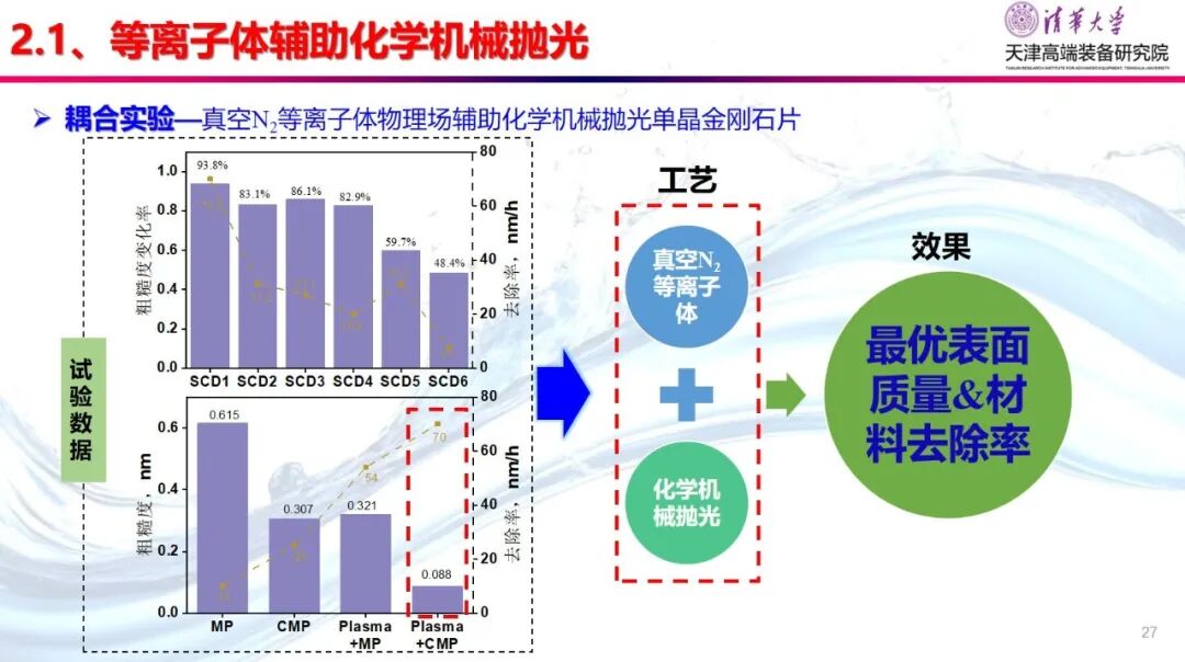 3. 等离子体辅助抛光工艺实现性能突破。通过仿真筛选出氮气等离子体为最优活化介质,可控生成无定形碳过渡层,同时优化出芬顿、纳米金属等高效催化体系。