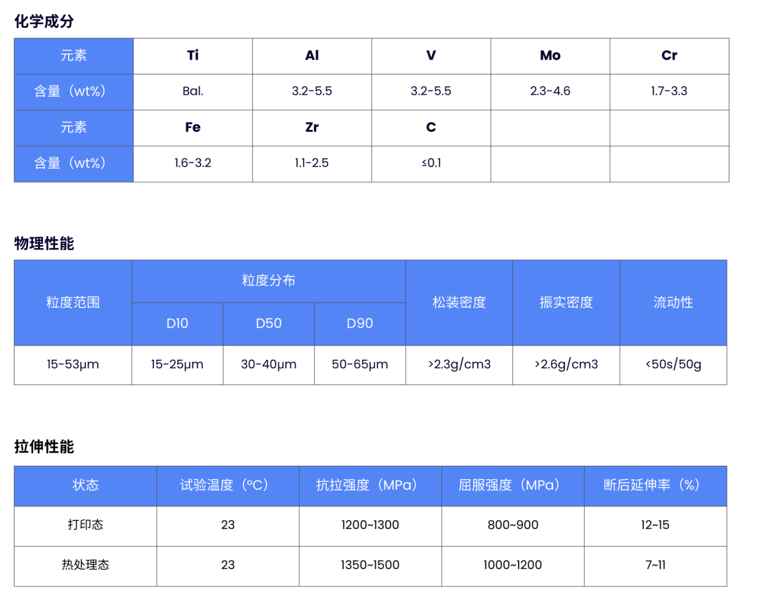 创材深造此次全球首发三款超高强钛合金粉末材料——CT1300H、CT1400H与CT1500H,以阶梯式覆盖方式满足不同强度等级的工程需求。