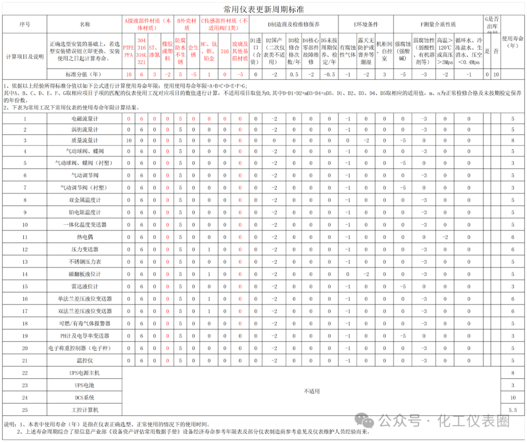 最后附上常用仪表更新周期标准,来源《化工仪表圈》,表格解析: