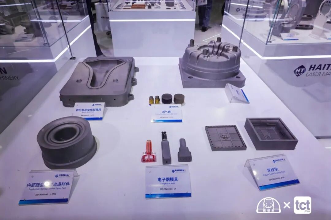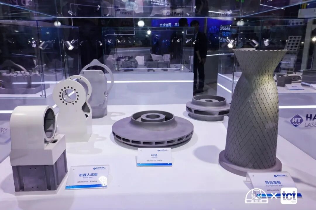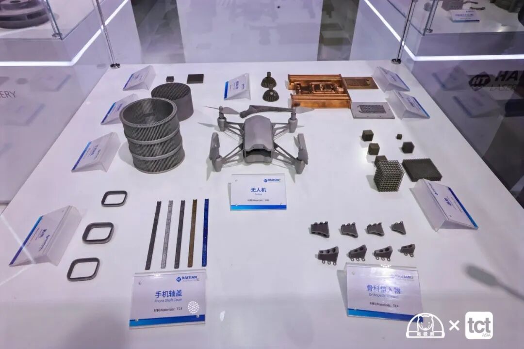 本次展会,海天增材展示了覆盖民用航空、发动机、模具制造、汽车制造、机器人、3C电子、鞋模、医疗植入物等全行业的应用案例。