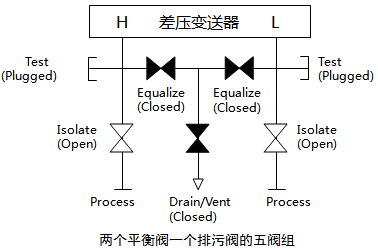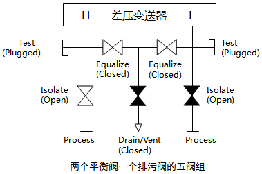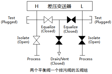①正常工况时,五阀组和正负引压阀打开,平衡阀关闭。